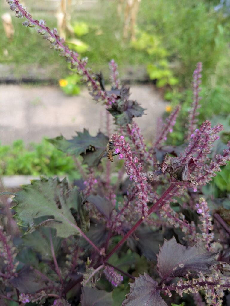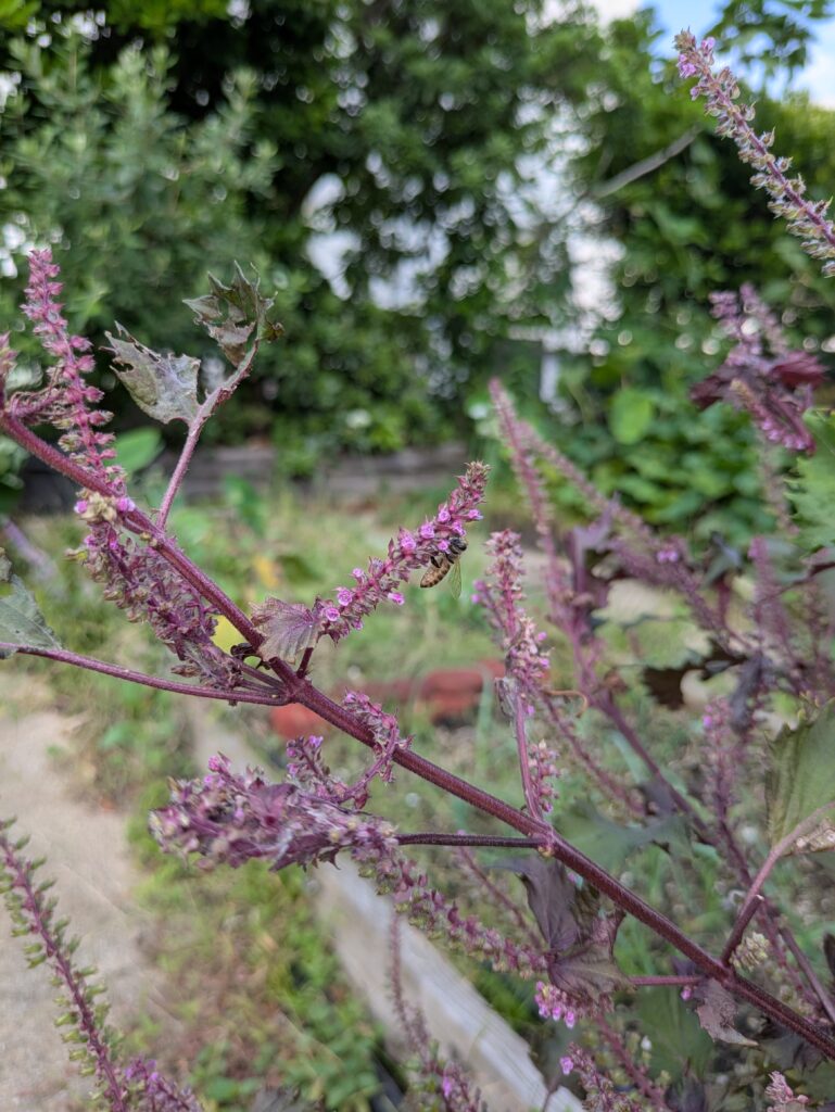 シソの花にミツバチが来ていました。