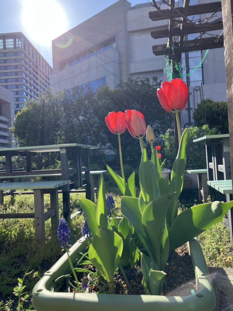 屋上のチューリップも綺麗に咲いて、